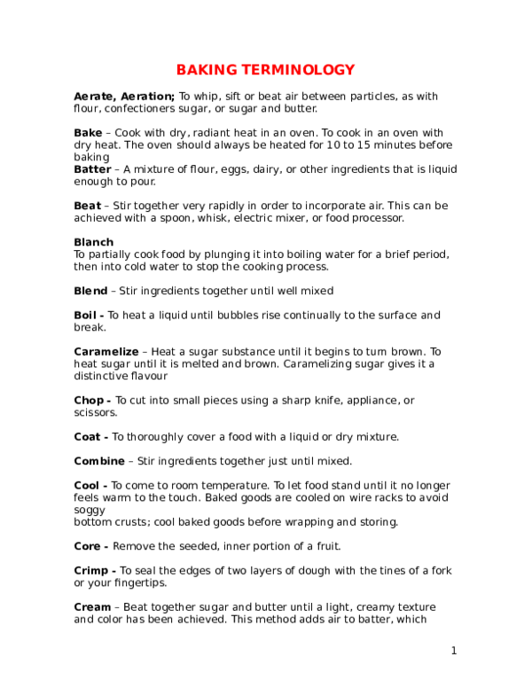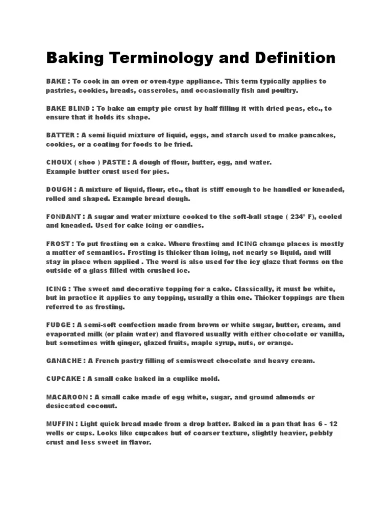 ALPHABETICAL GLOSSARY OF BAKING TERMS.